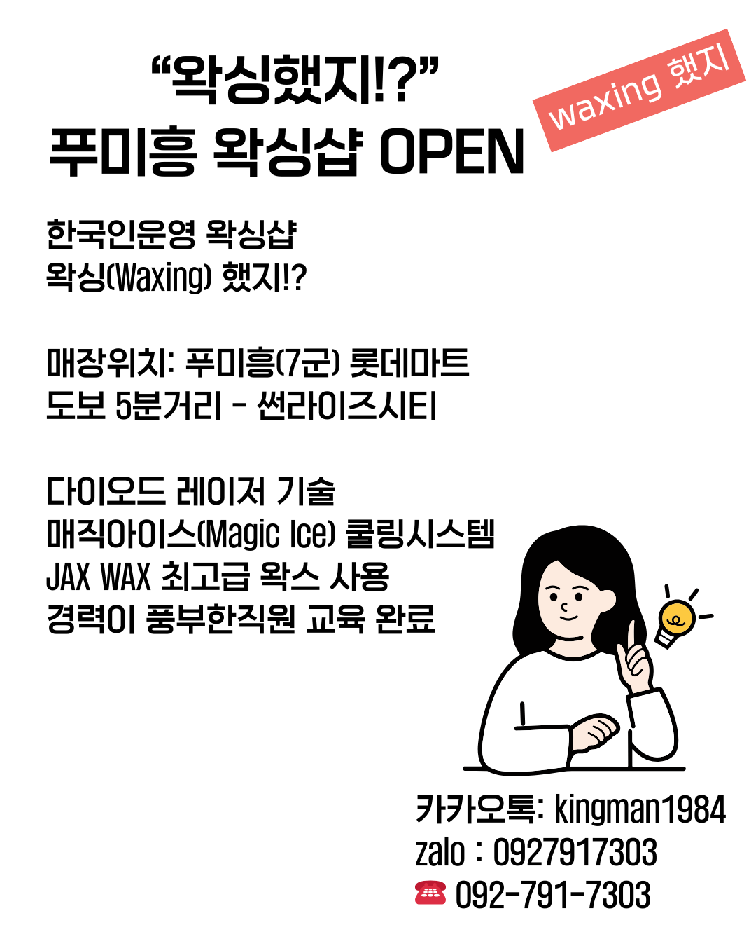 푸미흥 7군 롯데마트 근처에 왁싱했지!? (Waxing 했지!?) 푸미흥왁싱샵 오픈했습니다.